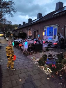 Extra leuk: het aantal huizen dat meedeed blijft elk jaar groeien. De deelnemende woningen waren stuk voor stuk fantastisch aangekleed – van enge skeletten tot creatieve lichtjes en rookmachines. Je merkte aan alles hoeveel moeite iedereen had gedaan, en dat maakte de Halloweenroute nóg leuker (en spannender 😉).